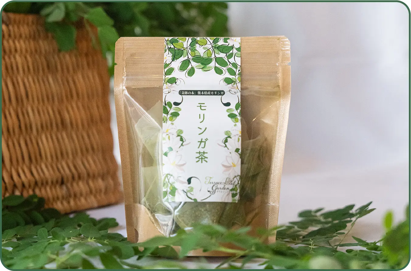 モリンガの栄養素を手軽に摂取するのにおすすめなモリンガ茶や、調理しやすい生葉などを、オンラインショップや地域の委託販売店でご購入いただけます。